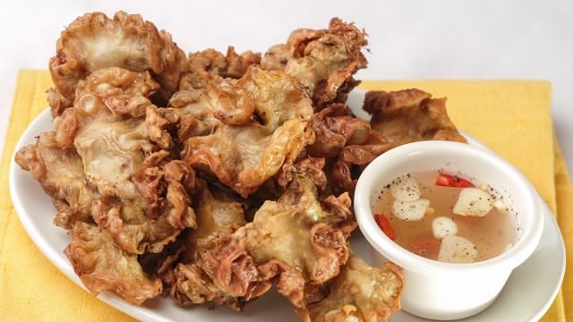 it is usually eaten as an appetizer and served with vinegar on the side. It takes a bit of time to clean (and boil) but this pork intestine dish, fried until crisp and crunchy, can be quite addicting.