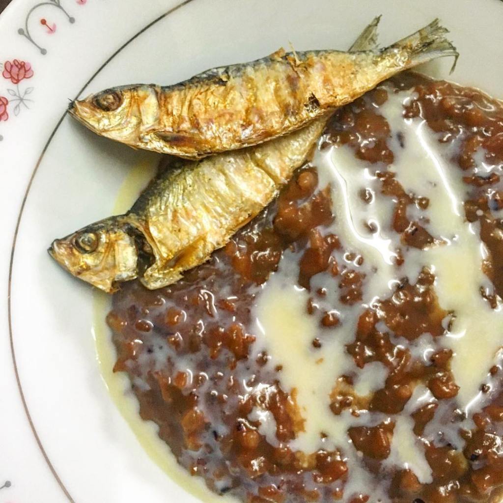 Is one of the most common breakfast foods in the Philippines. It is rice cooked with cocoa powder, with the option of adding milk and sugar for serving.