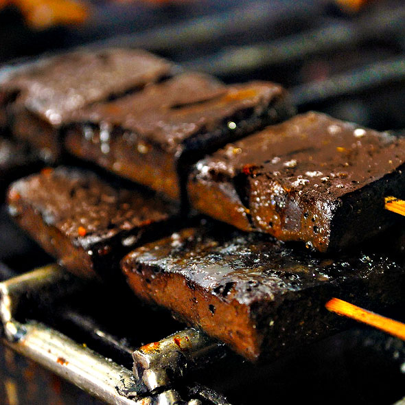 – Coagulated Chicken or Pork blood, shaped in squares and placed in skewers that is served hot off the grill. I mean, there is not much more to describe! Betamax has a liver like texture and is often enjoyed with a good dosing of bbq marinade and vinegar.